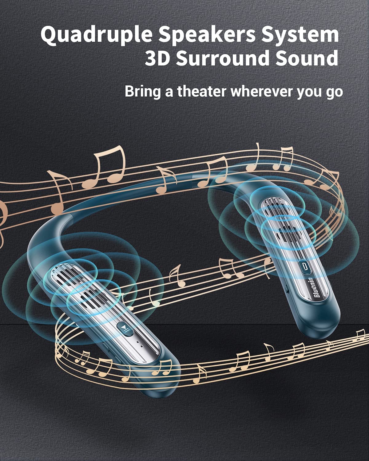 Bluetooth Speaker Bluenin Portable Bluetooth Speakers Wearable Neckband Bluetooth Speakers, Wireless Collar Speaker CVC 8.0 Noise Cancelling 3D Sound Personal Sport Speaker with Mic(Black)