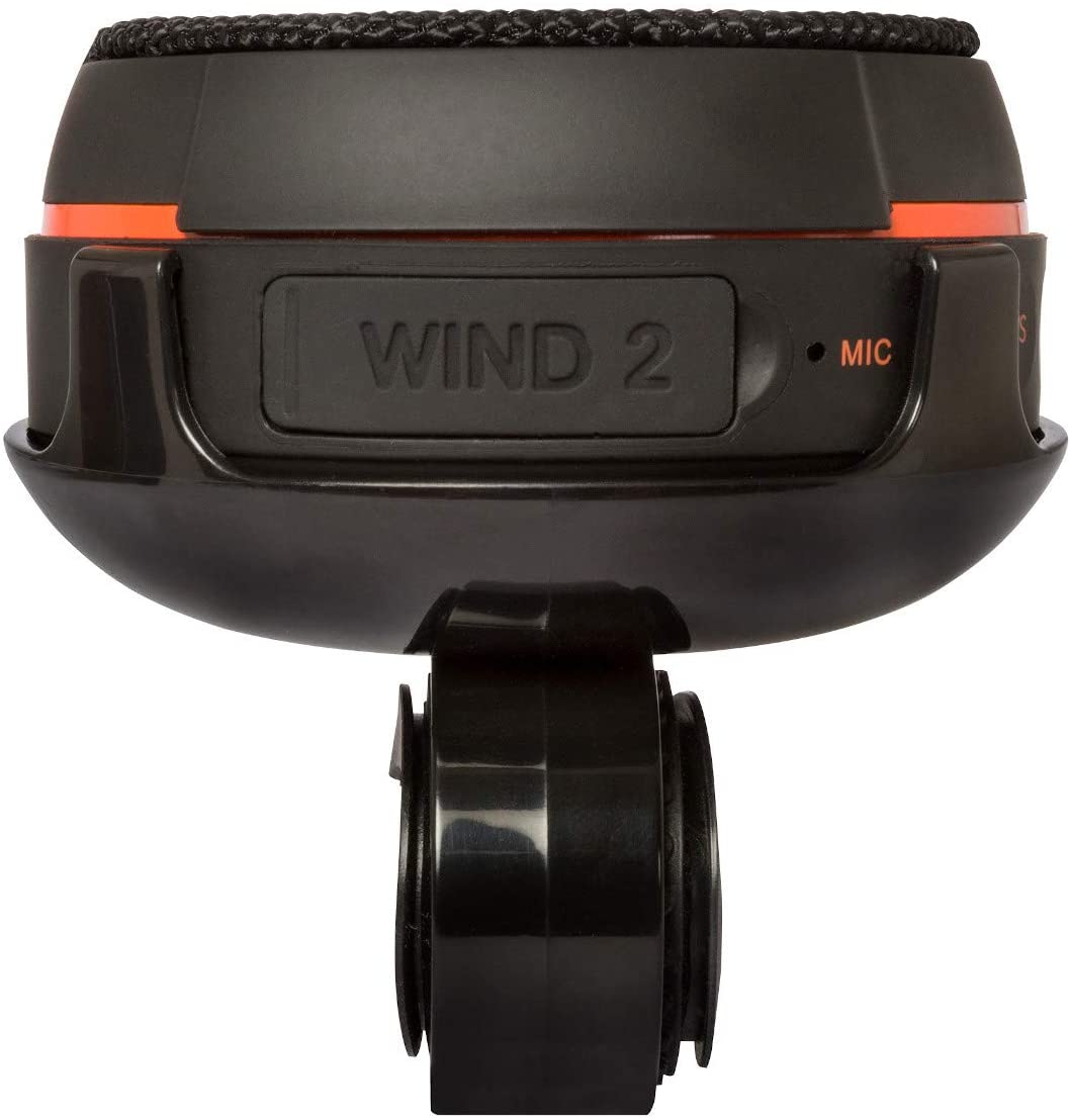 Ready to roll The JBL Wind 2 portable Bluetooth speaker was made for the road – specifically, when you hit the road with your bike. This speaker snaps into an included handlebar mount. And if you’re on foot, just latch the speaker to your backpack with the included carabiner clip. The Wind 2 is totally waterproof, so if you can stand the rain, so can the speaker. Entertainment options You can wirelessly stream music from your smartphone via Bluetooth. The Wind 2 also has a built-in FM tuner, so you could listen to the big game as you pedal through the countryside. There’s also an SD card slot, for cards up to 64GB. Load your workout playlist and start pedaling! Easy to use The Wind 2 has side-mounted control buttons. They’re indented, so you can easily find them without taking your eyes off the road. The speaker also has a stereo minijack, so when you get where you’re going, you can plug in some earbuds and kick back. The Wind 2’s built-in rechargeable battery gives you up to 10 hours of operation. And the speakers LCD display lets you clearly see what’s playing.