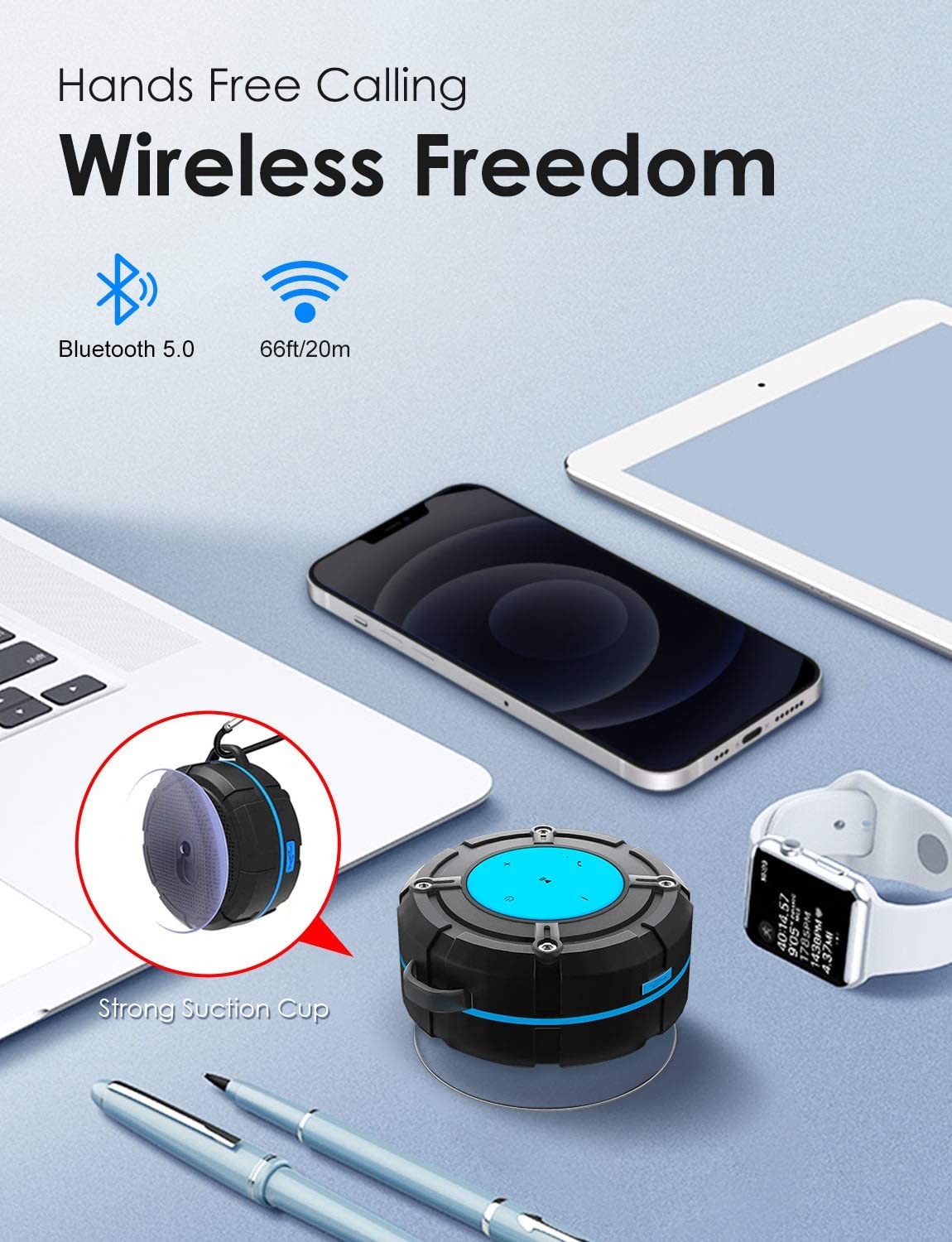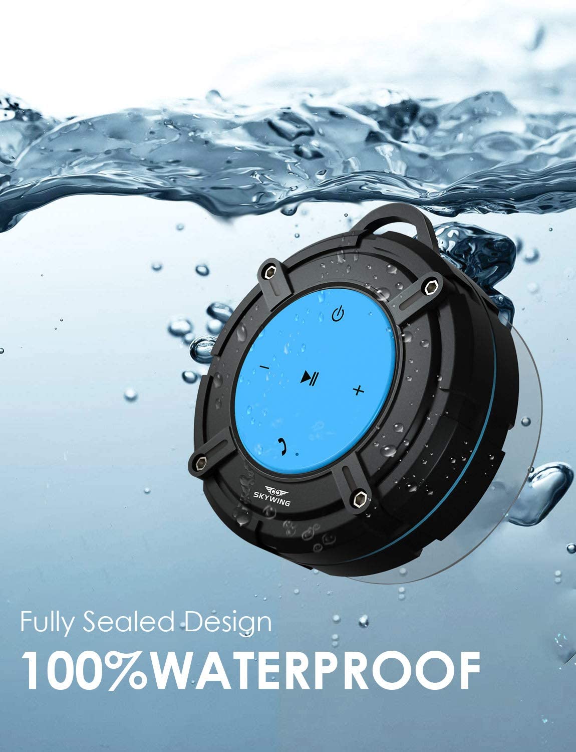 SKYWING Soundace S8 5W Shower Speaker Waterproof IPX7 Bluetooth Speaker with Suction Cup & Hook, 12H Playtime, Premium Portable Wireless Speaker for iPhone Phone Tablet Shower Beach Pool